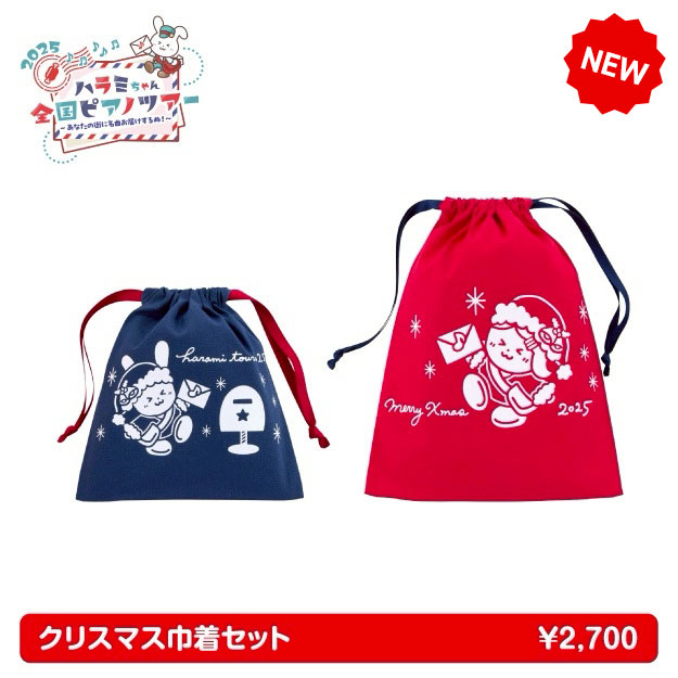 サンタ衣装のハラミちゃん&ウサミちゃんがとっても可愛い巾着セットに、ハラミちゃん切手キーホルダー。